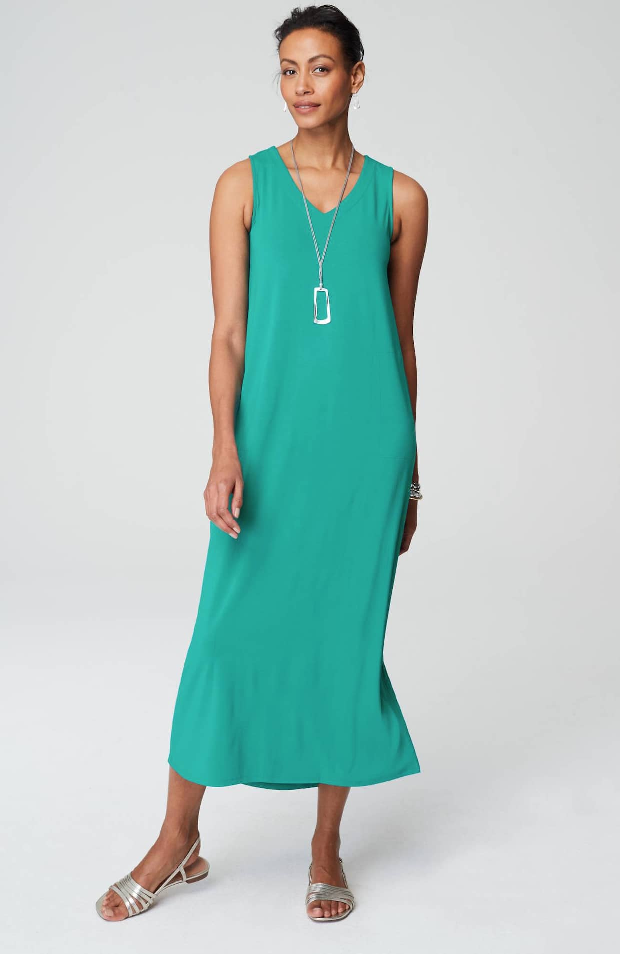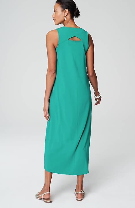 Winner: most effortless spring dress. In a light, breezy silhouette, designed with a graceful elliptical hem, cross-back detail, subtle cutout and on-seam, stitched-through pockets. Designed to wear through the season and well into summer.