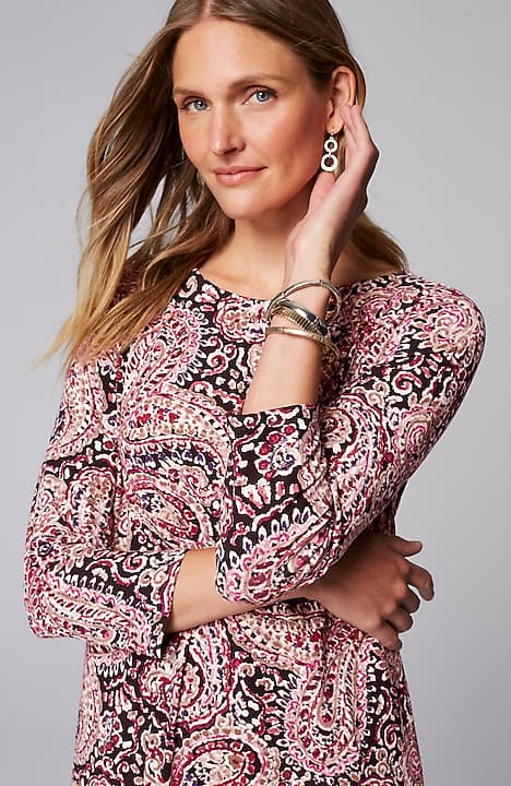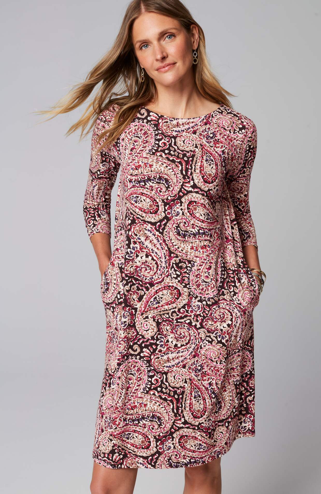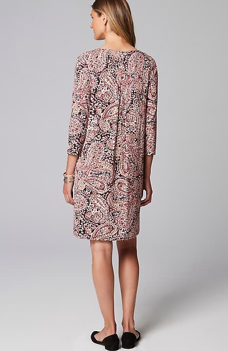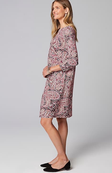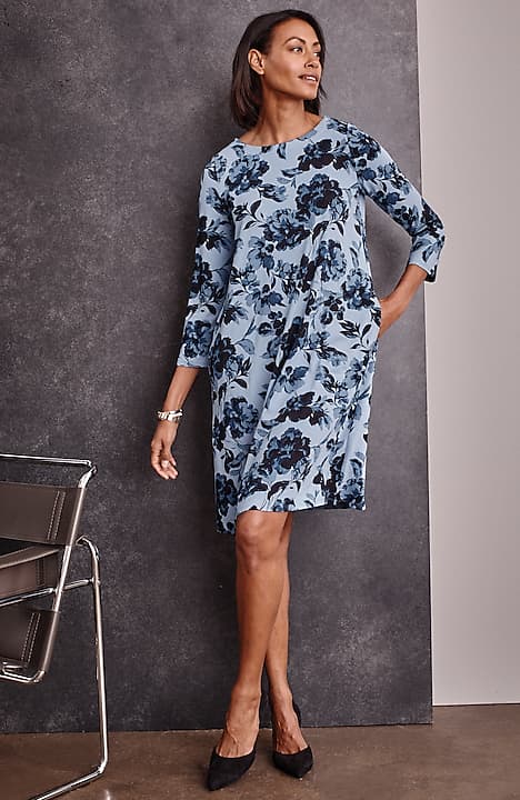 A classic A-line silhouette, thoughtfully placed back pleats and pockets—our knit dress is simply timeless. Made from soft LENZING™ ECOVERO™ Viscose fibers (plus a little Lycra® spandex for stretch). The manufacturing of LENZING™ ECOVERO™ Viscose fibers generates up to 50% lower emissions and water impact compared to generic viscose. Unlined.