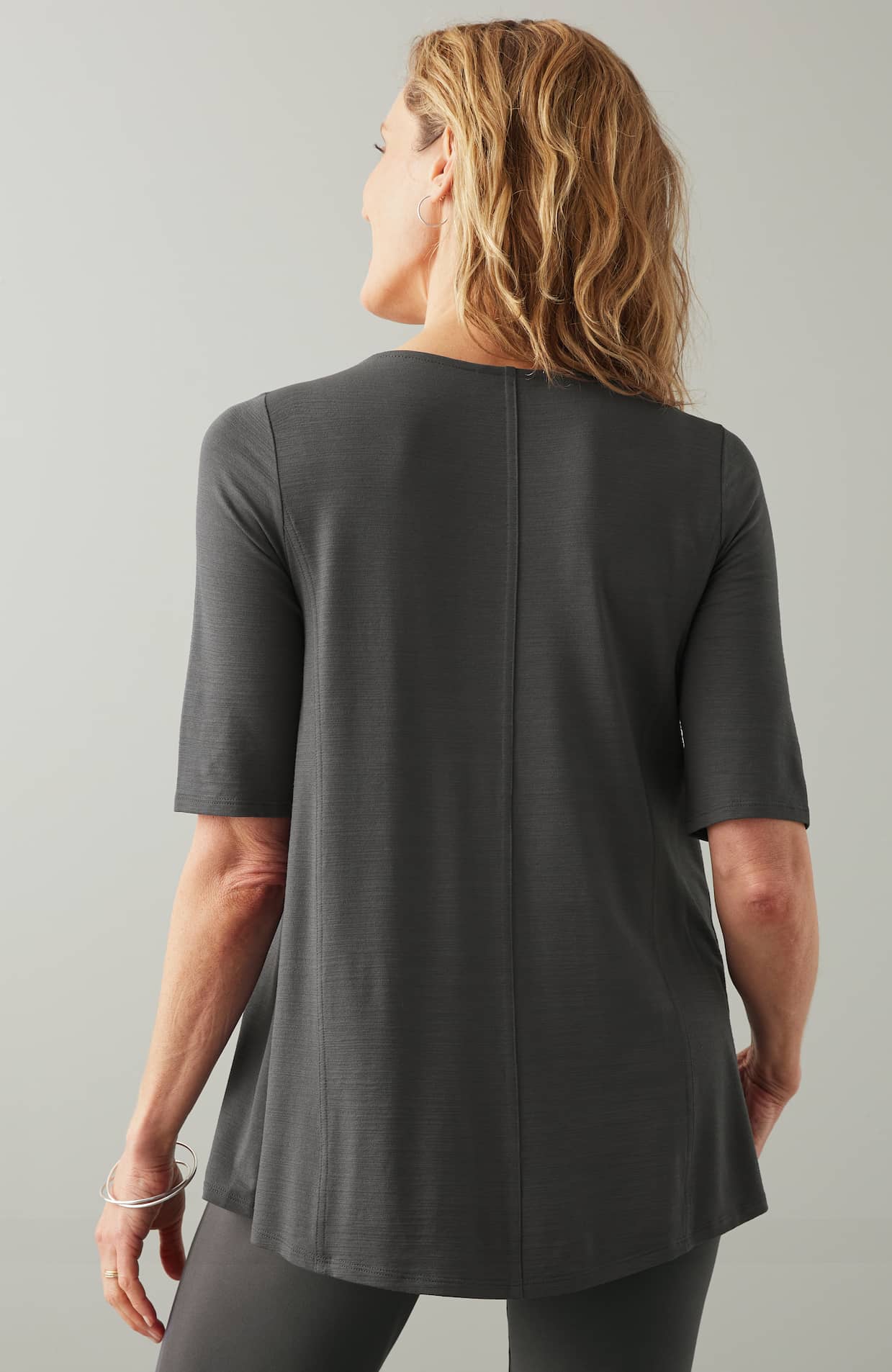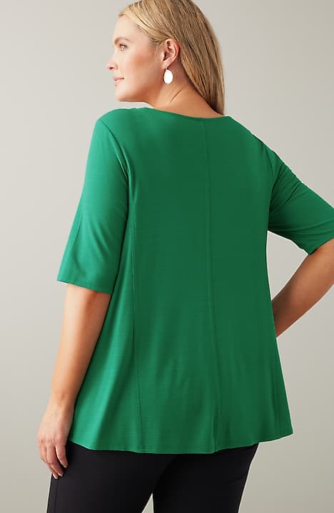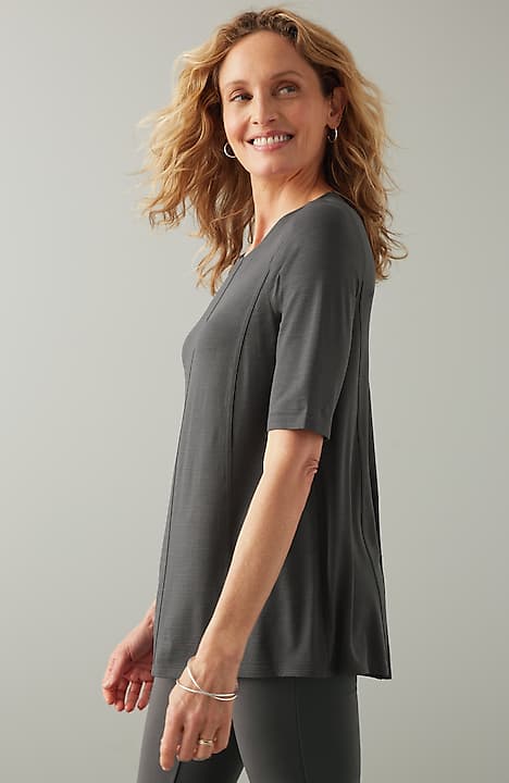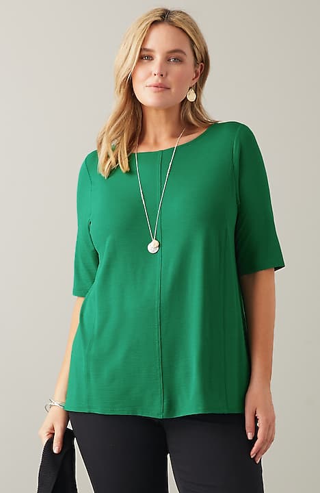 An elevated take on the everyday tee. Knit in a soft slub texture, it has a boat neckline and flattering forward seams. And you can feel good about wearing this style because it contains LENZING™ ECOVERO™ fibers. The manufacturing of LENZING™ ECOVERO™ Viscose fibers generates up to 50% lower emissions and water impact compared to generic viscose.