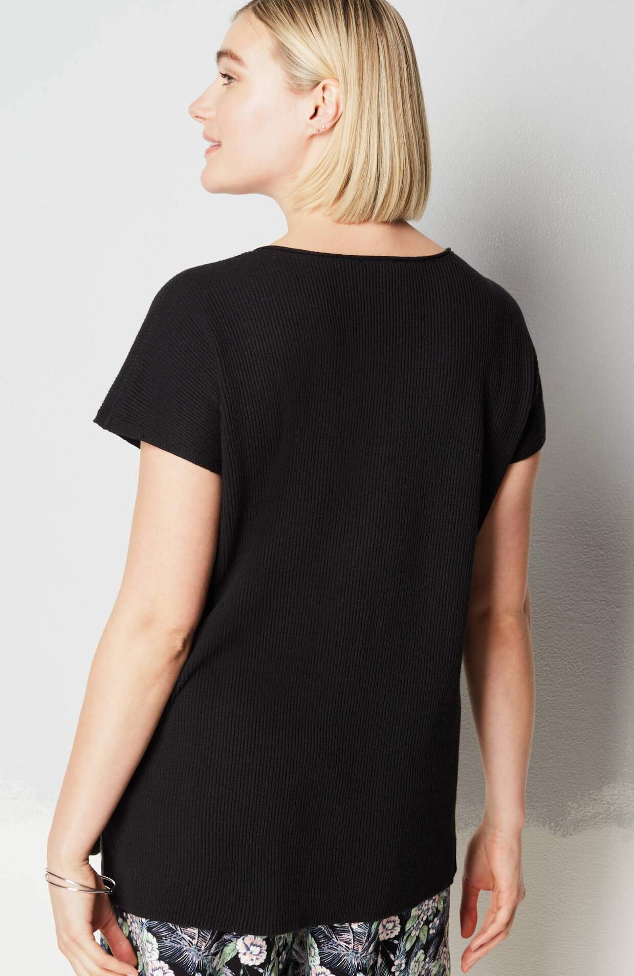 Our softly textured sweater with season-perfect short sleeves is great for cool summer days. You'll love how the relaxed shape pairs perfectly with our matching open-front cardi. V-neckline. Side vents.